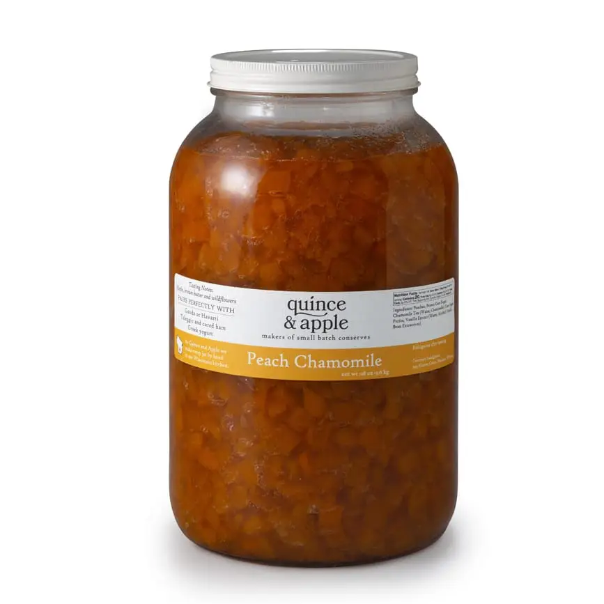 Ingredients: Peaches, Brown Cane Sugar, Chamomile Tea (Water, Chamomile), Cane Sugar, Pectin, Vanilla Extract (Water, Alcohol, Vanilla Bean Extractives)