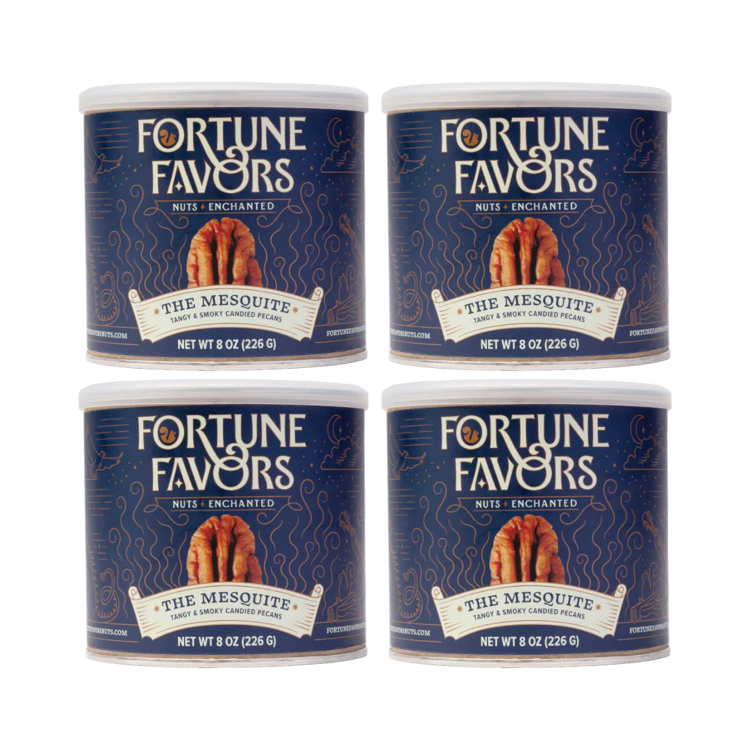 Fortune Favors The Mesquite, a magical mix of barbecue-inspired pecans, written with notes of cumin, chipotle, and a hint of coriander, culminating in a song of sweet, salty, and smoky perfection. Savor each crunchy pecan and be transported. Whether it's a sun-drenched barbecue under the open sky or a dazzling starlit celebration, let Fortune Favors The Mesquite join the revelry.