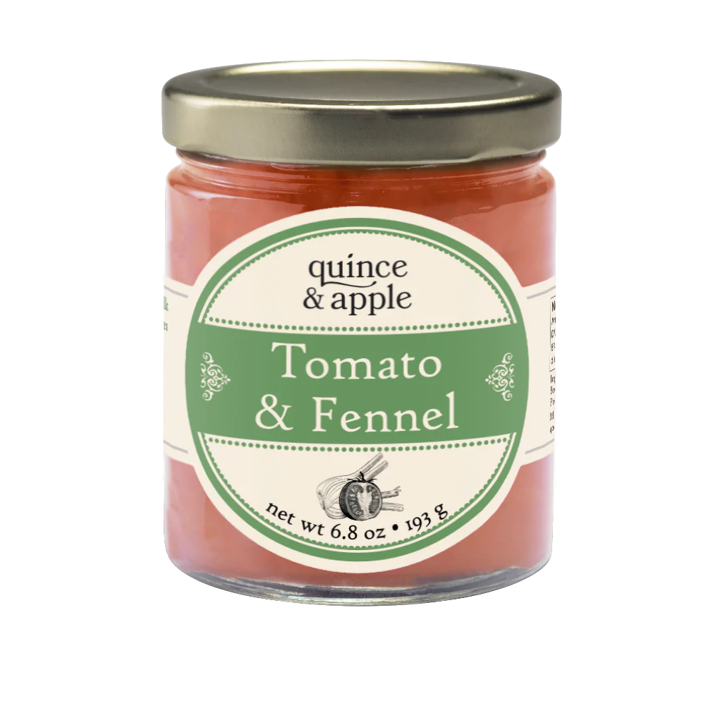 Bright, savory, and slightly sweet, this conserve blends ripe tomatoes with the aromatic depth of fennel for a uniquely balanced spread. Slow-cooked to bring out the natural sweetness of the tomatoes and the subtle licorice note of fennel.
